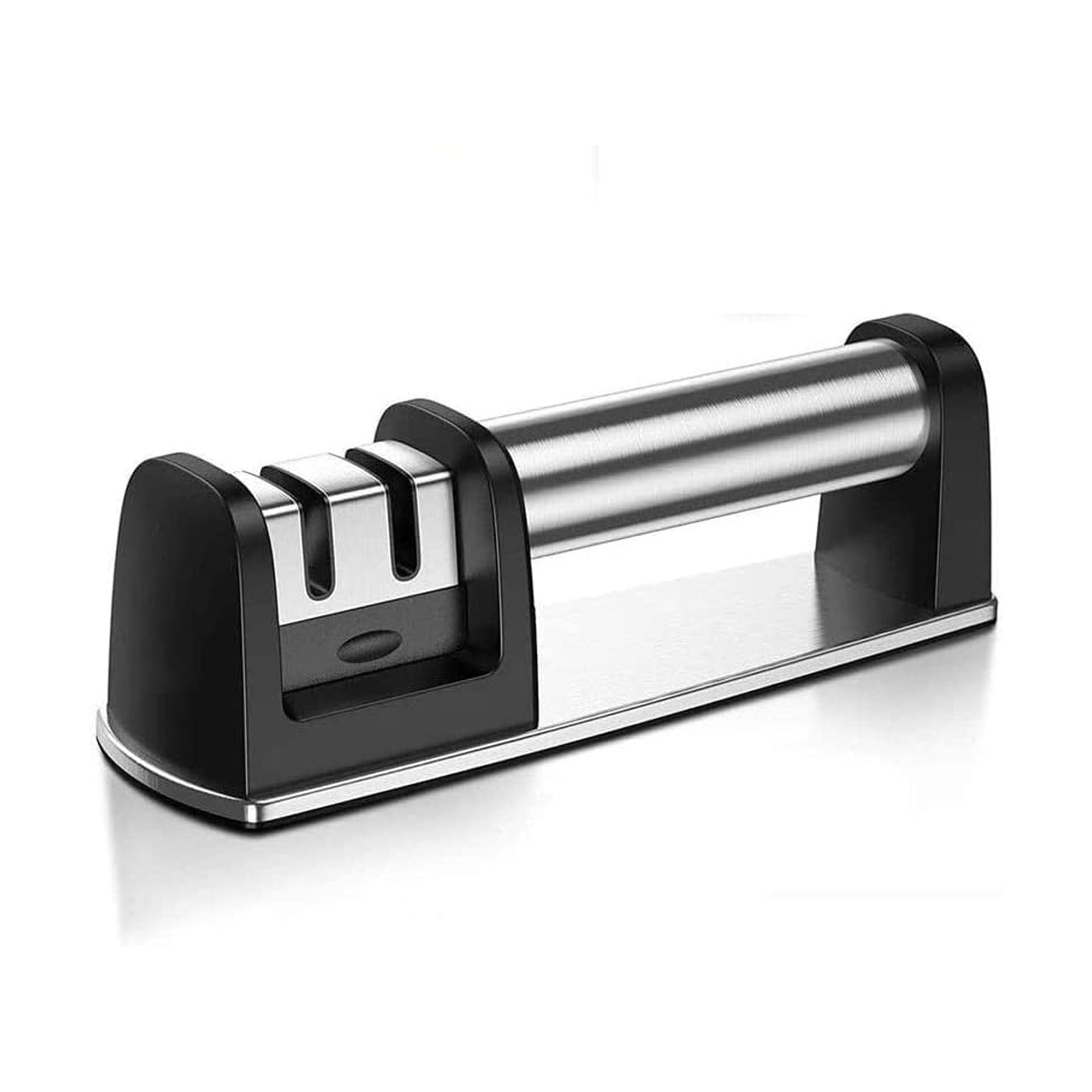 The non-slip base provides stability during sharpening, and the 5-second speed sharpening works well for routine maintenance. However, it struggles with severely damaged blades that need extensive reprofiling.